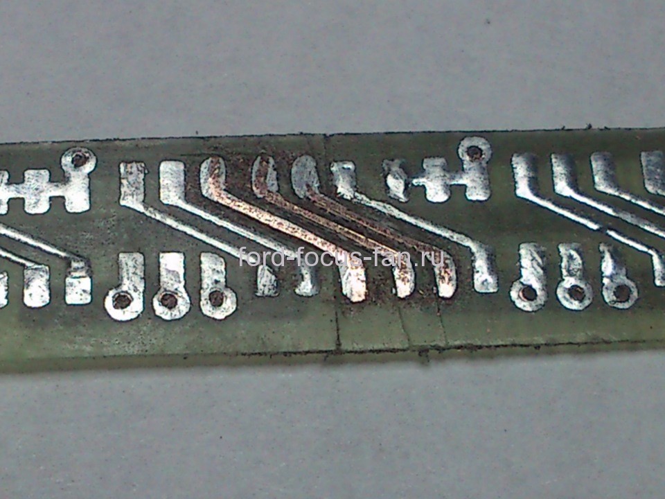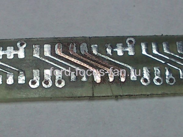 Ремонт : медную жилу из провода витая пара и аккуратно напаиваем поверх повреждения дорожки
